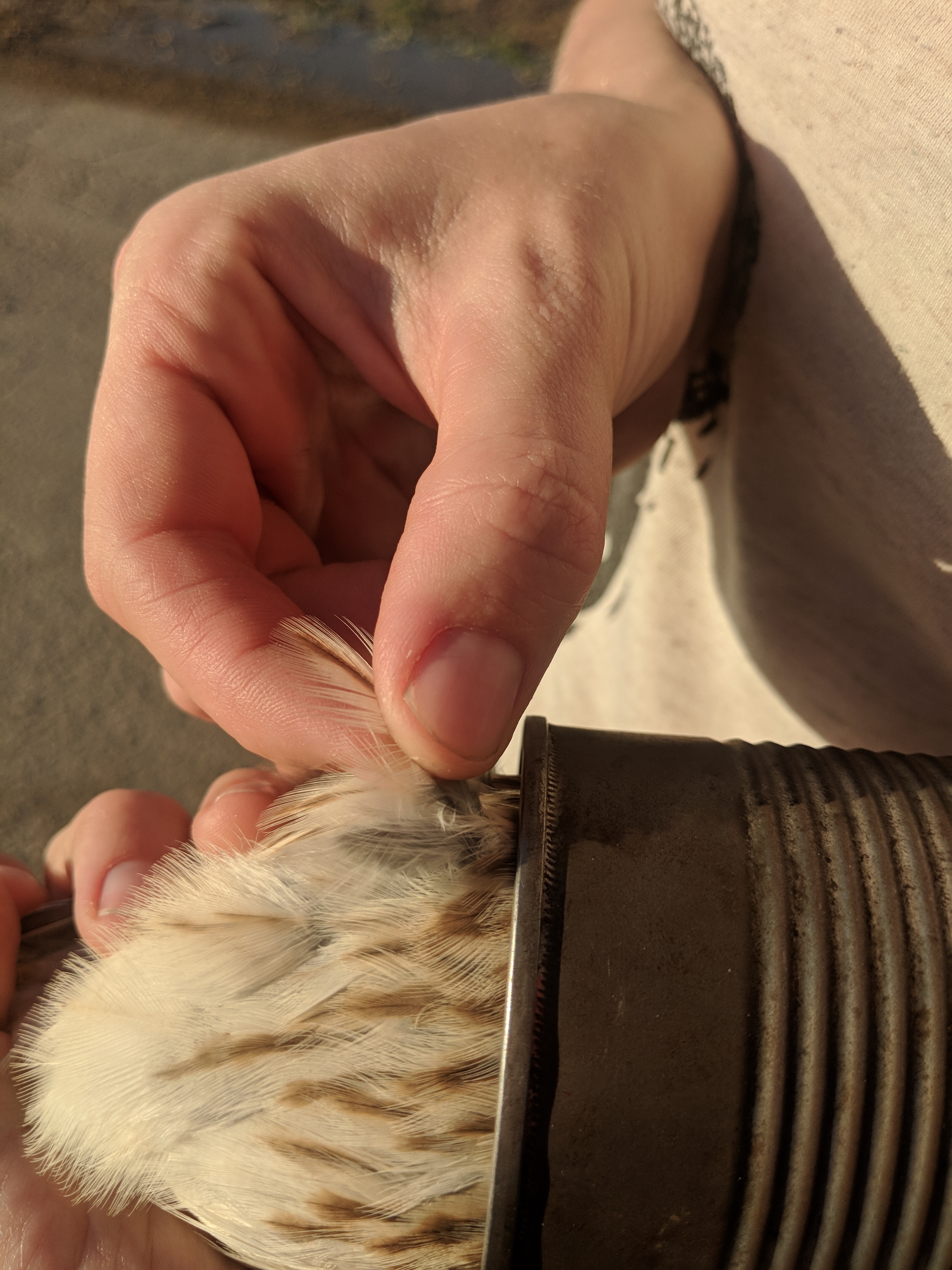 Maker:L,Date:2017-8-29,Ver:5,Lens:Kan03,Act:Kan02,E-Y A feather sample is collected for genetic analysis Posted byfullcyclephenologyproject Published March 15, 2018 at 3024 × 4032 in Winter Update: sampling American Kestrels across their U.S. wintering range — Leave a Comment